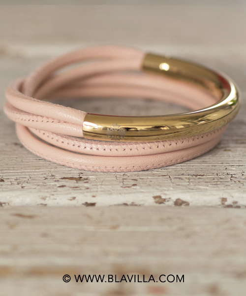 Dobbio nahkarannekoru, väri: vaaleanpunainen + kulta 14K.
